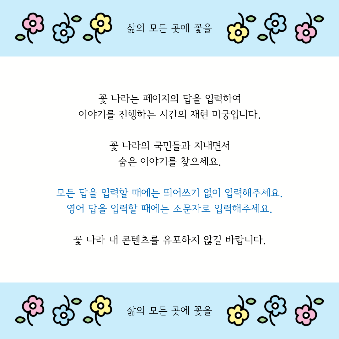 이 정도 문제도 풀지 못한다면 꽃 나라에서 살 수 없어요.